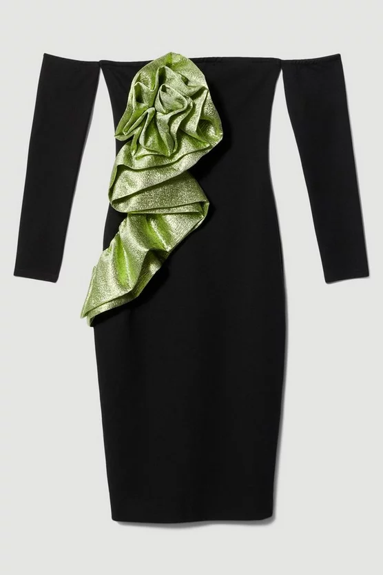 A statement piece with classic appeal, this bandeau midi dress lends itself perfectly to grand occasions. Enlivened with a bold rose applique piece, this dress will ensure you stand out from the crowd while maintaining elegance at all times.