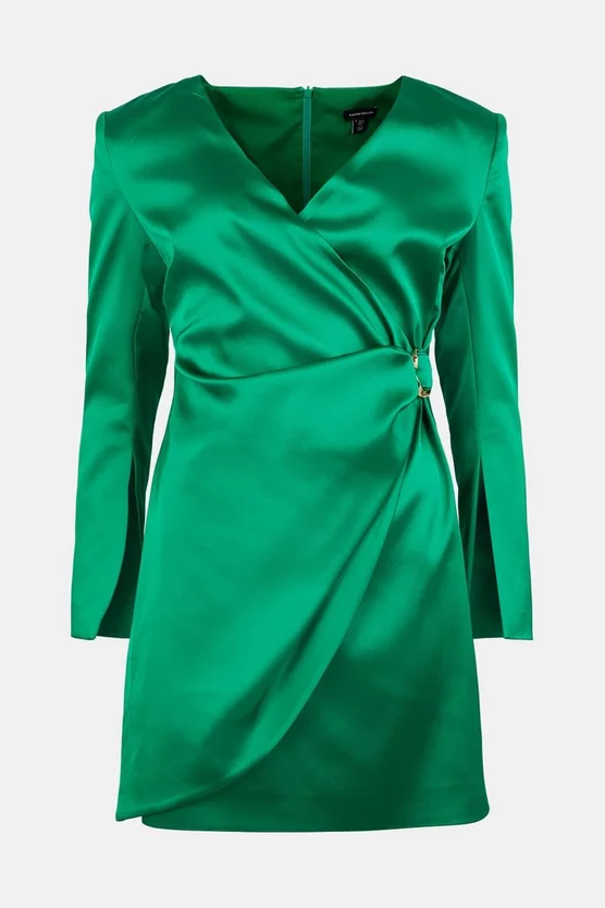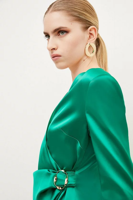 Get ready for your moment in the spotlight in this sophisticated dress. Marrying Italian structured satin with distinctive details β think split-detail sleeves, wrap front and waist-defining buckle β it strikes the perfect put-together style note for after dark.