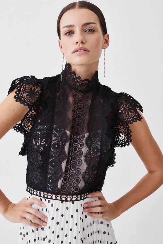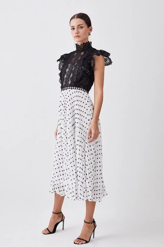 Cheap ๐ Karen Millen Petite Rose Guipure Lace Woven Pleat ๐ Skirt Midi ๐ Dress ๐