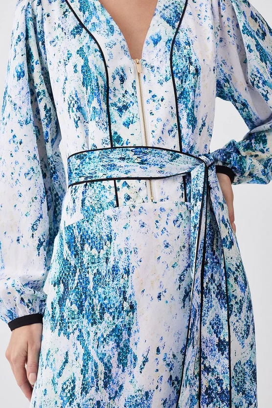 100% polyester. Gentle machine wash at 30 with similar colours. Model Height 5”10 – Model wears a UK 8/US Size 6. Centre back length of a 10: 120cm