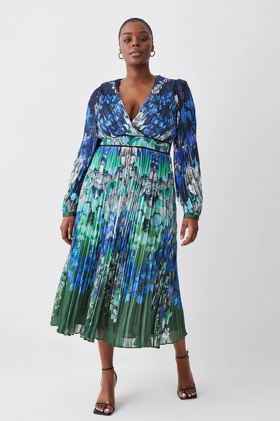 Discount βοΈ Karen Millen Tall Mirrored Ombre Floral Pleat Drama Woven Midi π Dress π