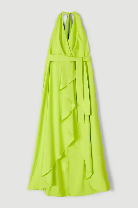 Rippling with romantic dimension, this midi dress cascades with a waterfall silhouette. Defining the waist with a self-tie belt, style this dimensional design with soaring stilettos to elongate the dramatic depth.