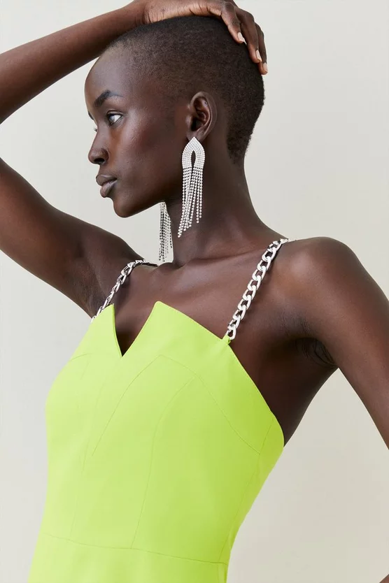 Cascading from scintillating chains, this party-stopping piece is crafted for unforgettable ensembles. Revered for its form-fitting composition, this midi dress tailors the silhouette with bespoke aplomb.
