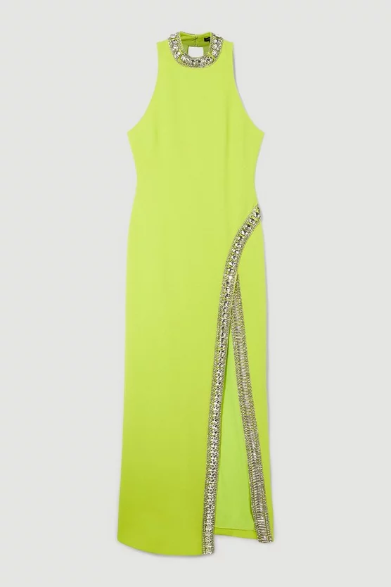 New β€οΈ Karen Millen Embellished Detail Figure Form Crepe Midaxi π Dress π