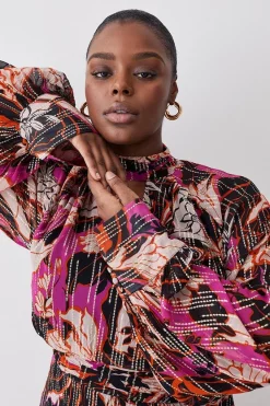 Promo π Karen Millen Plus Size Boarder Floral Print Satin Woven Midi π Dress π